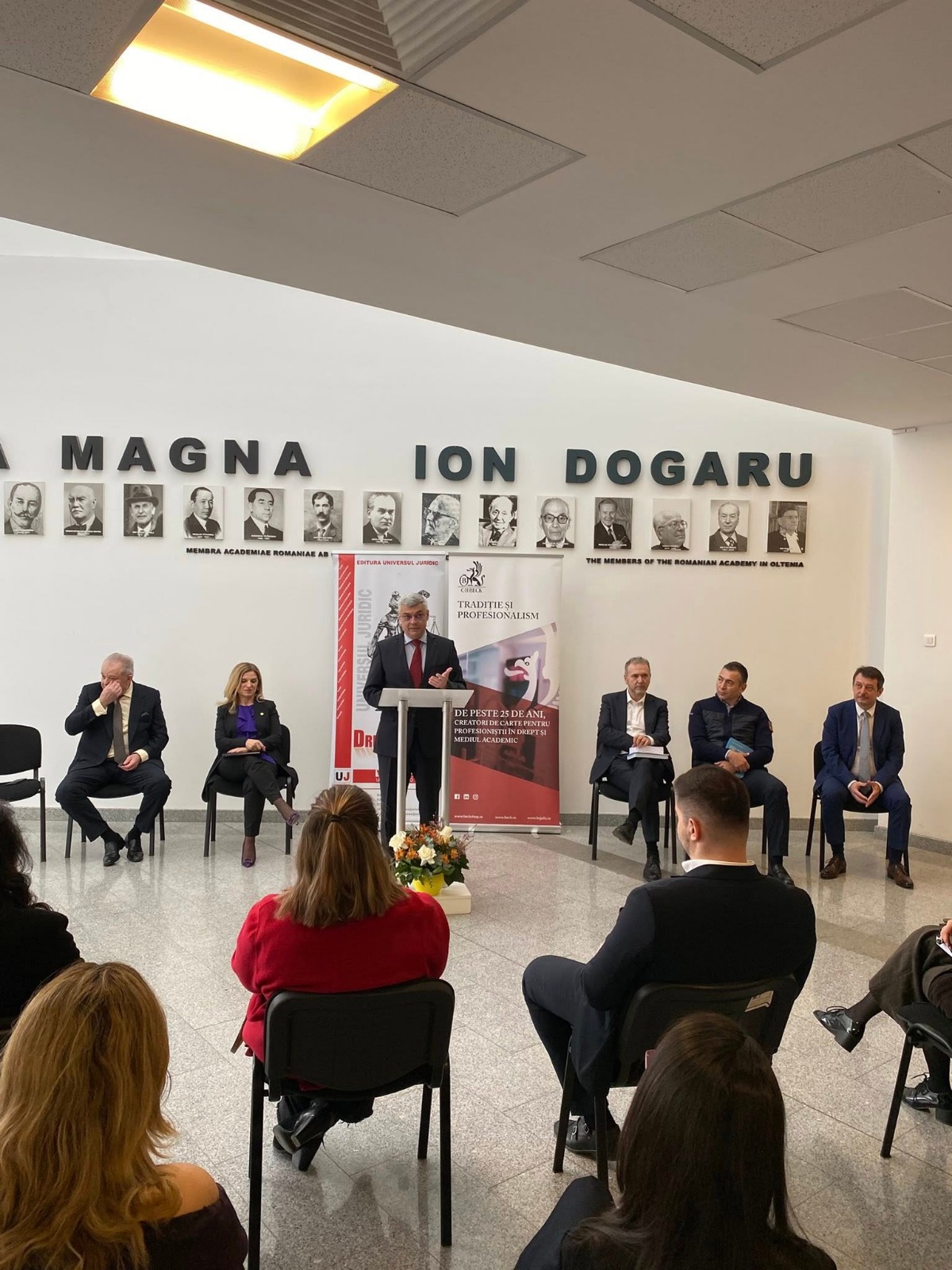 Momentul festiv a avut loc cu ocazia lansării lucrării acestei valoroase contribuții, în cadrul unui eveniment găzduit de Facultatea de Drept din Craiova, moderat de domnul Nicolae Cârstea, directorul editurii Universul Juridic și care s-a bucurat de prezența și alocuțiunile doamnei prof. univ. dr. Marieta Safta, președinta Asociației Române de Drept Constituțional, domnului prof. univ. dr. Ștefan Deaconu de la Facultatea de Drept a Universității din București și domnului prof. univ. dr. Mihai Bădescu, președintele Asociației Române de Filosofia Dreptului.