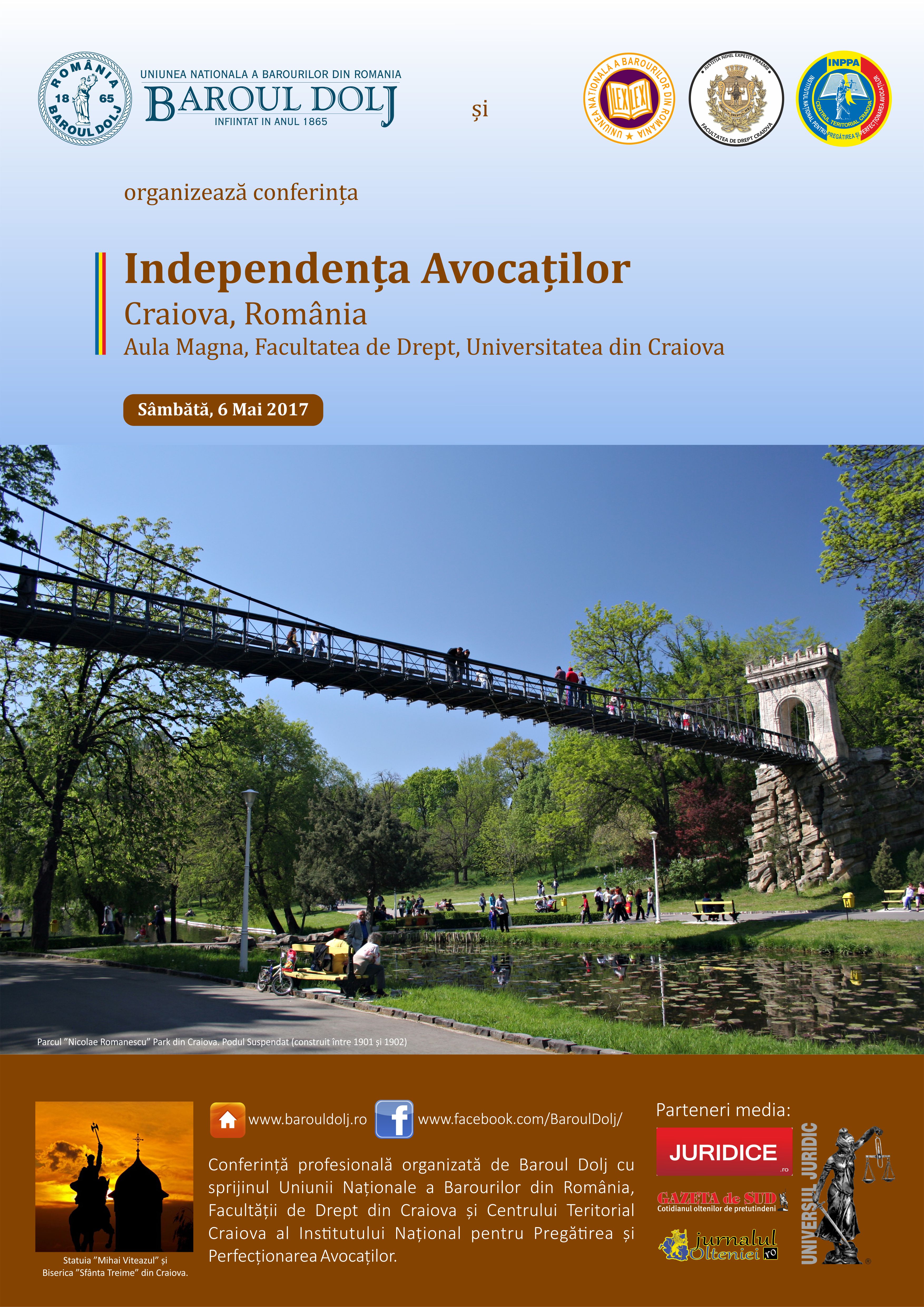 Baroul Dolj - Afis Conferința Independența Avocaților, Craiova, 6 mai 2017