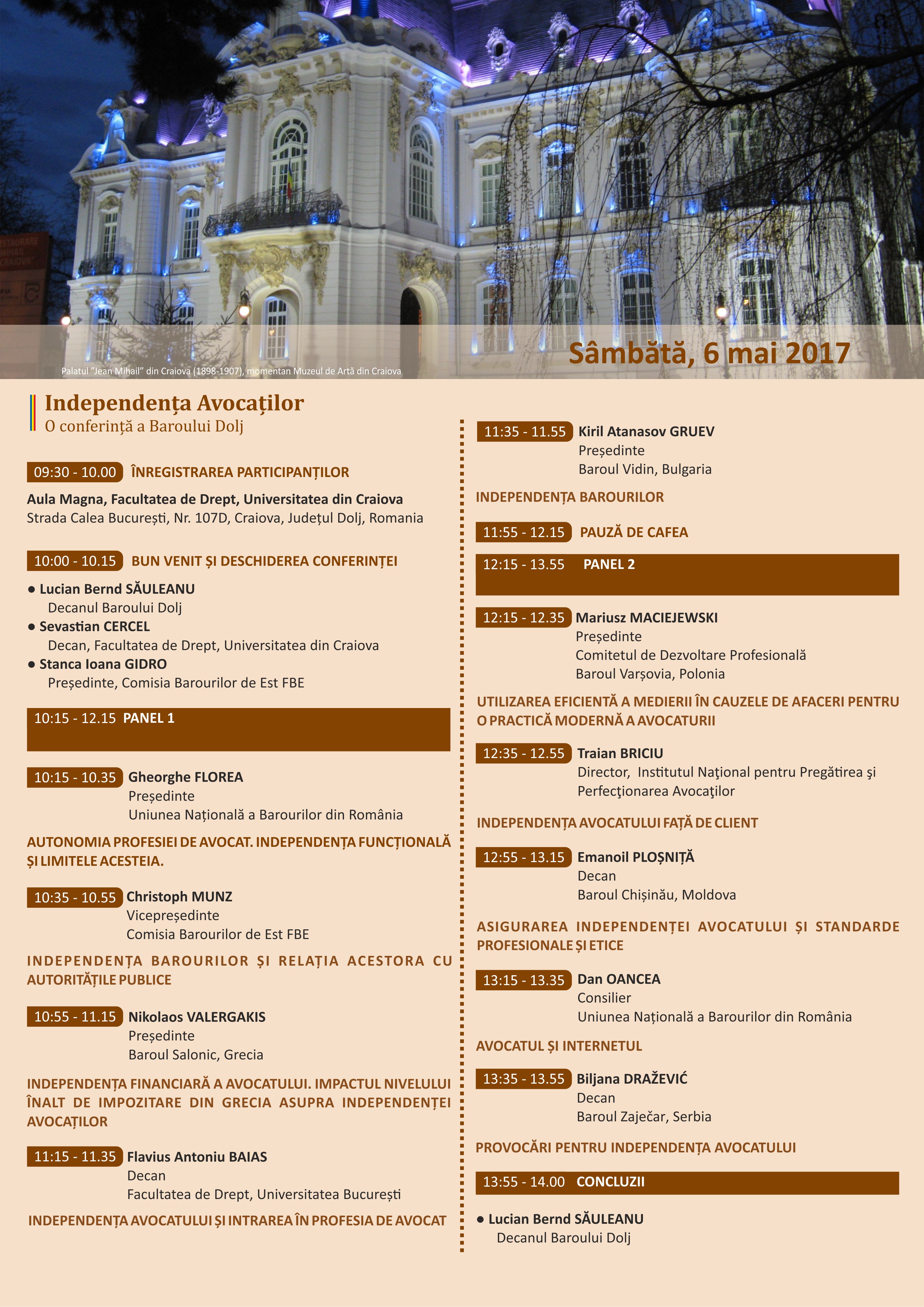 Conferința Independența Avocaților, Craiova, 6 mai 2017